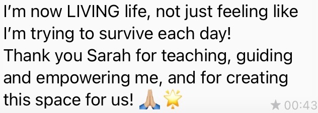 You can reach out for support from Sarah and the other women in the program about anything, anytime. Being a part of a high-level network of women who aren't so much on a 'healing journey' as they are a god damn AWAKENING- who are experiencing in-the-moment results is the playground of attunement, safety and belonging that unburdens the load of this work when carried alone.
